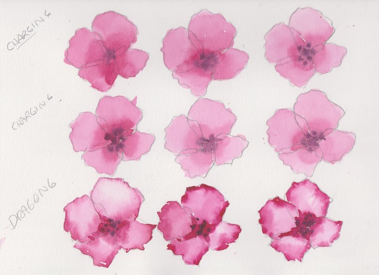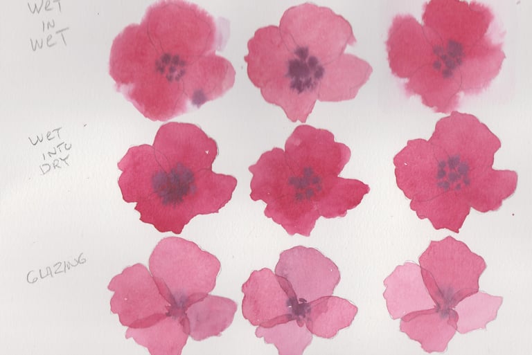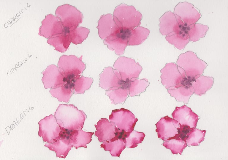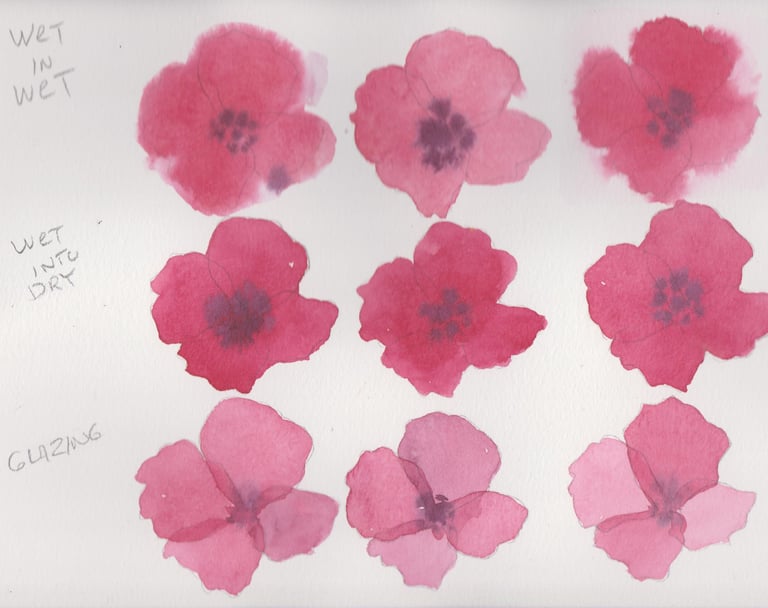 1.Paints: Lemon Yellow, Cad Yellow medium, Cad Red light, Rose, Ultramarine Blue, Thalo Blue, Yellow Ochre, Burnt Sienna