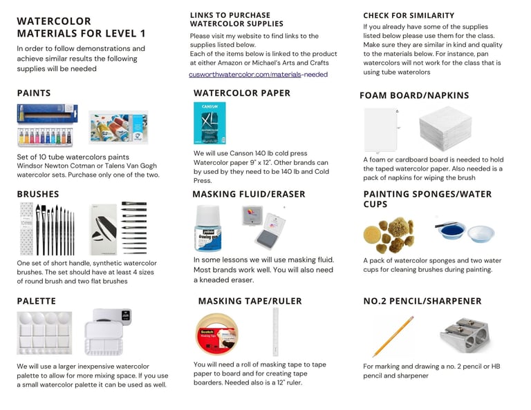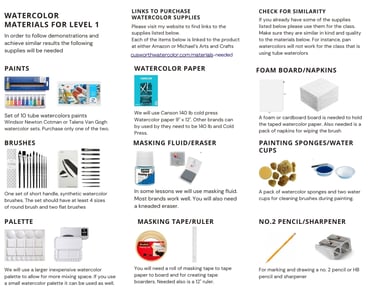 Introduction for finding supplies for the Beginning Watercolor Level 1 lessons